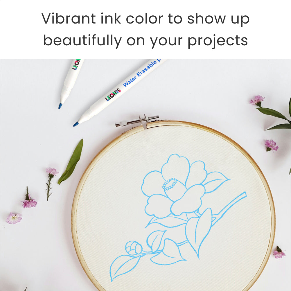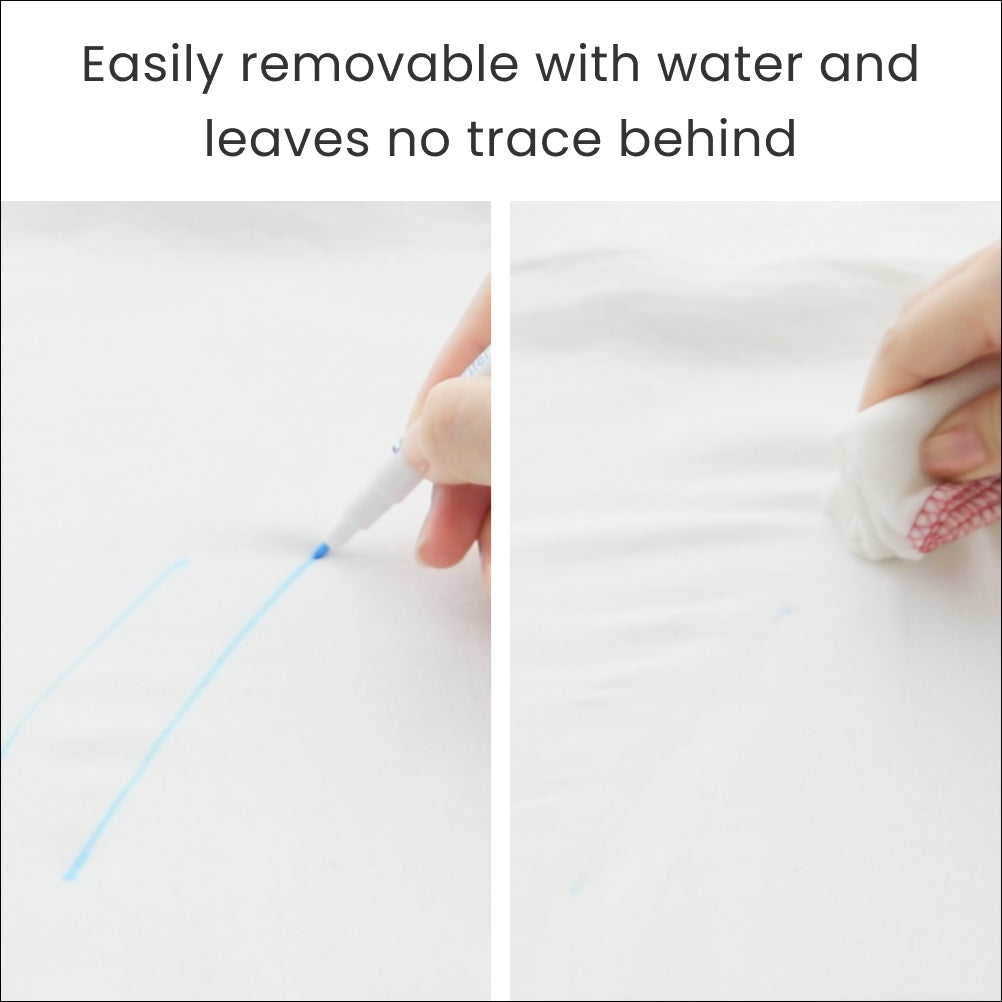 "SUPER happy with this purchase, by far the most fine tip fabric marker I’ve used yet, and am still on my first pen with no drying out after using pretty heavily on about a 1/4 yard of fabric. Cleanup is super easy when it comes time to remove (some water soluble pens require a full wash of the fabric), I have simply been dabbing a moist q-tip over the ink lines and it vanishes - great for delicate work that you don’t want to saturate."