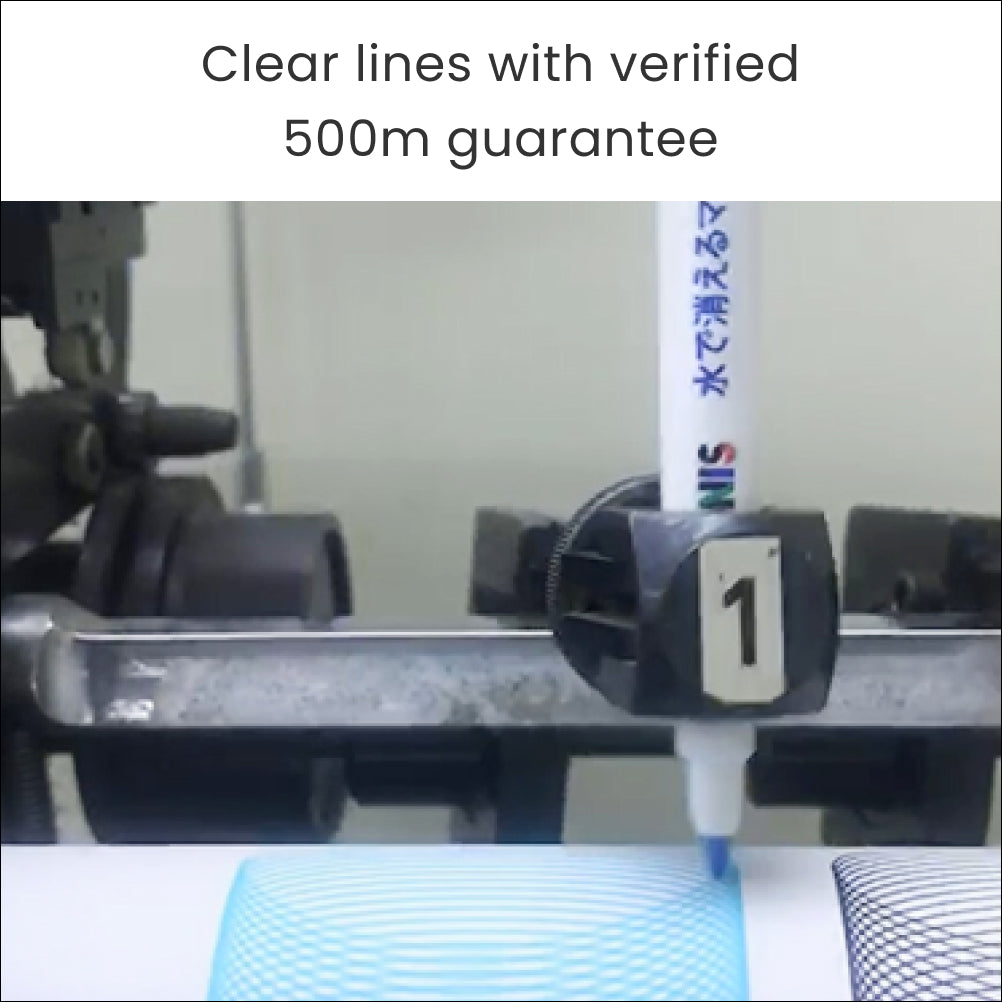 它採用了日本高品質的墨水配方,能夠有效地用濕布溶解或清洗掉標記,不留下任何痕跡。