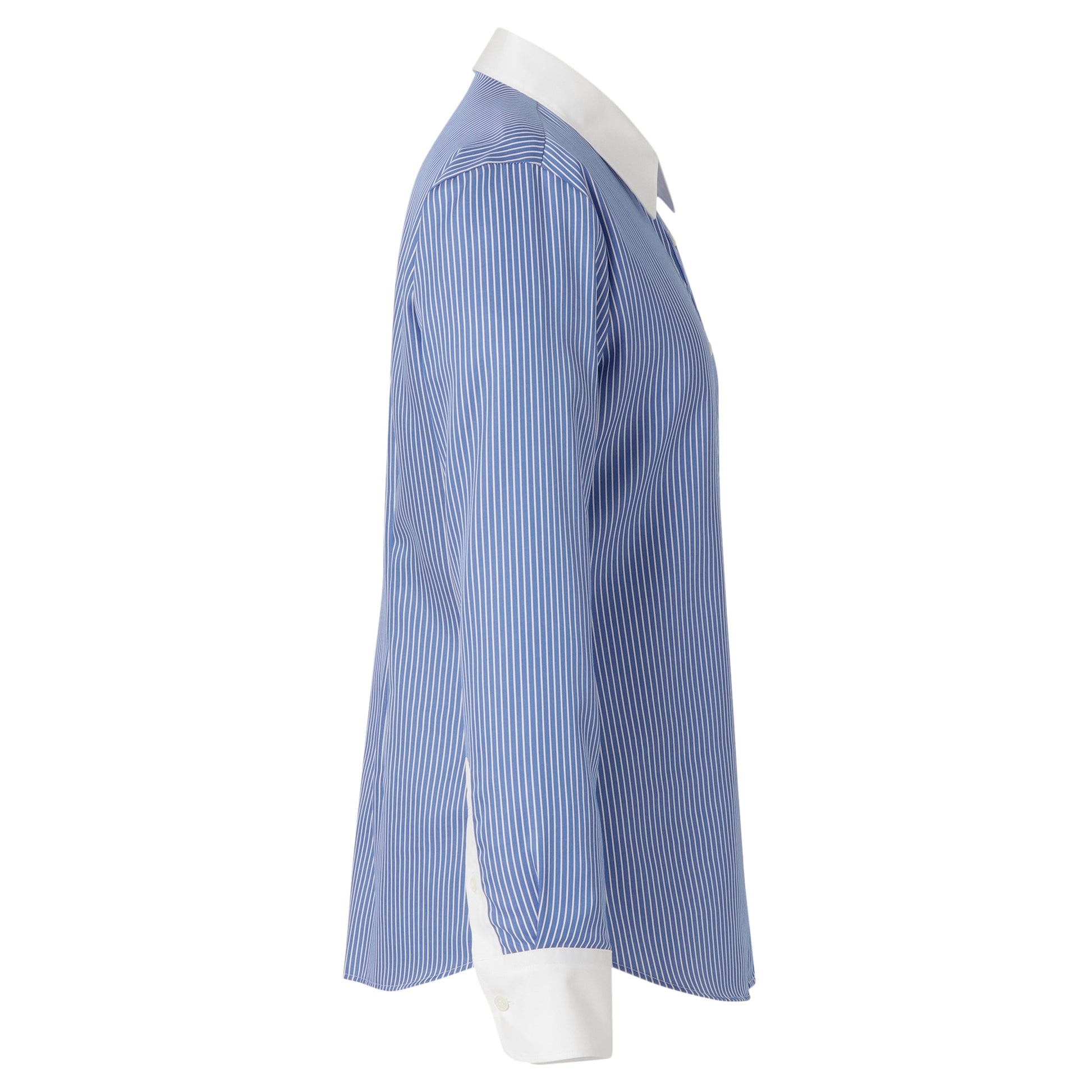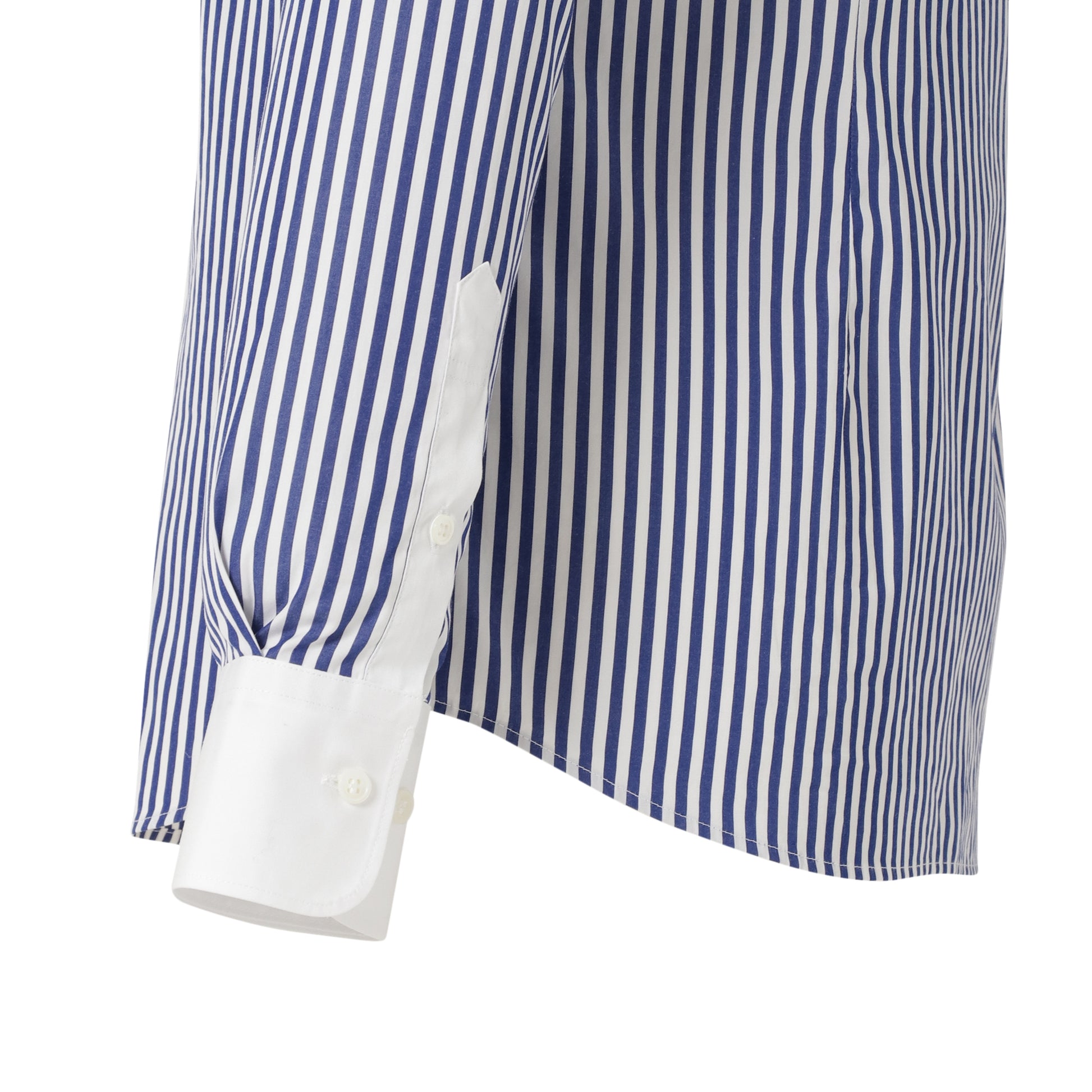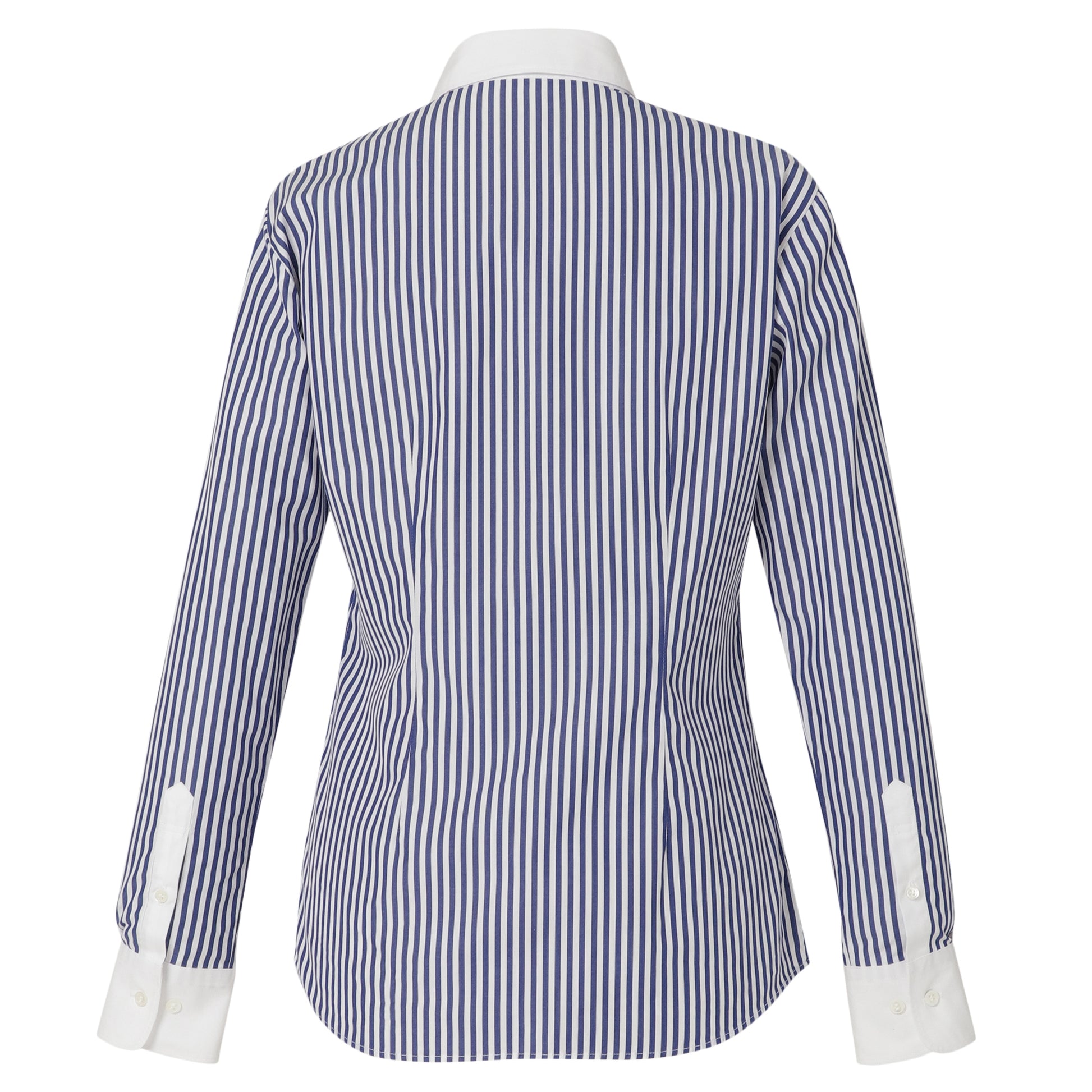 純棉 免燙 女性襯衫長袖海軍藍條紋