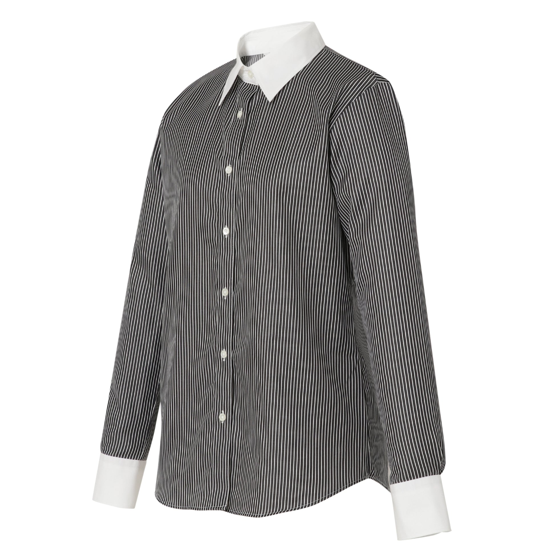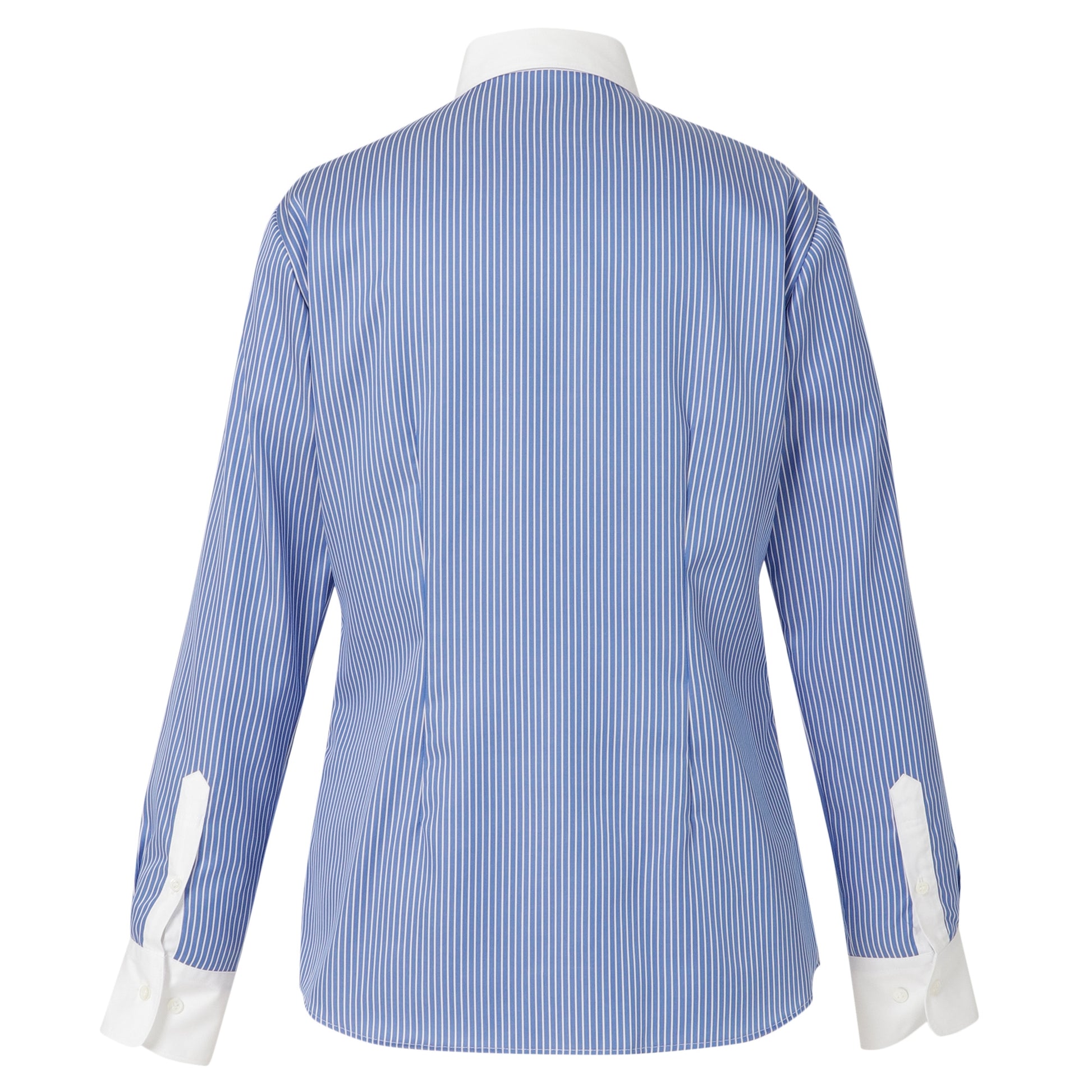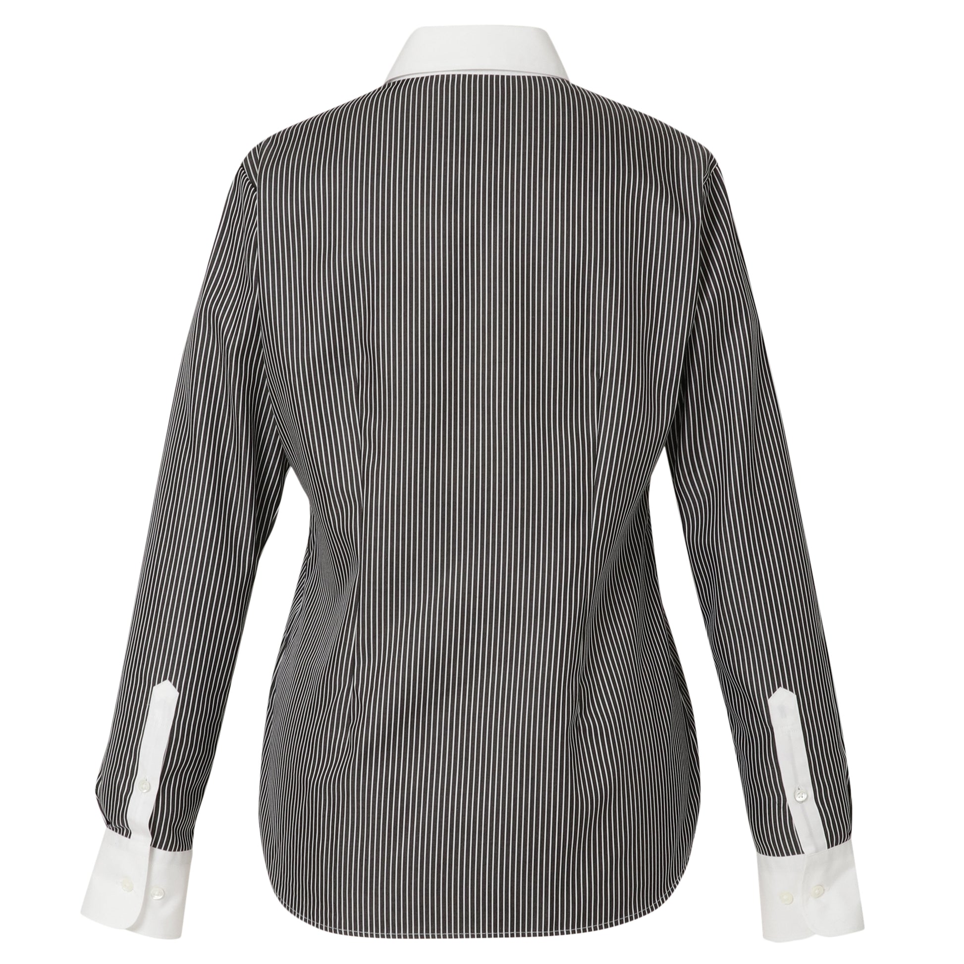 純棉 免燙 女性襯衫長袖海軍藍條紋