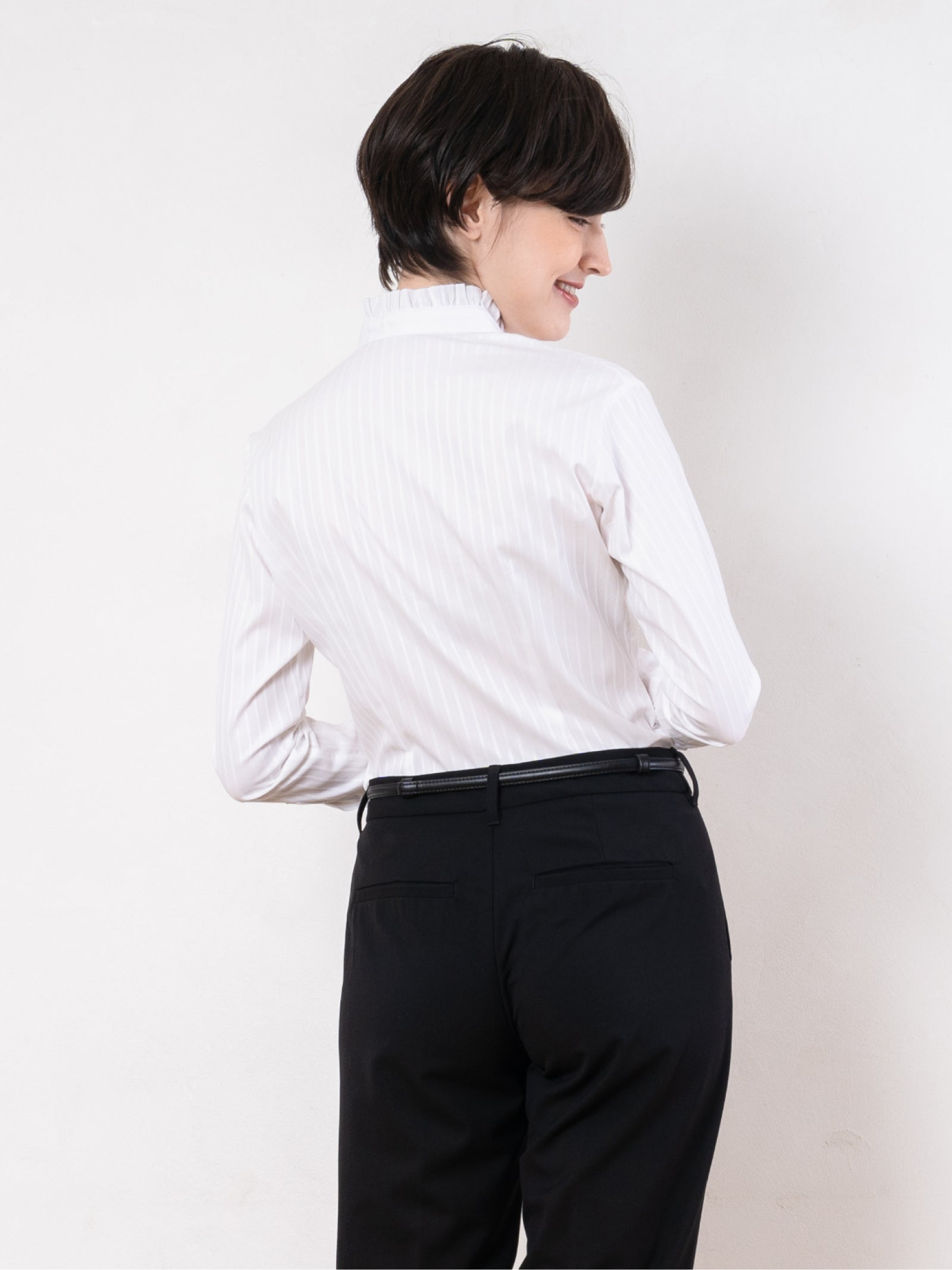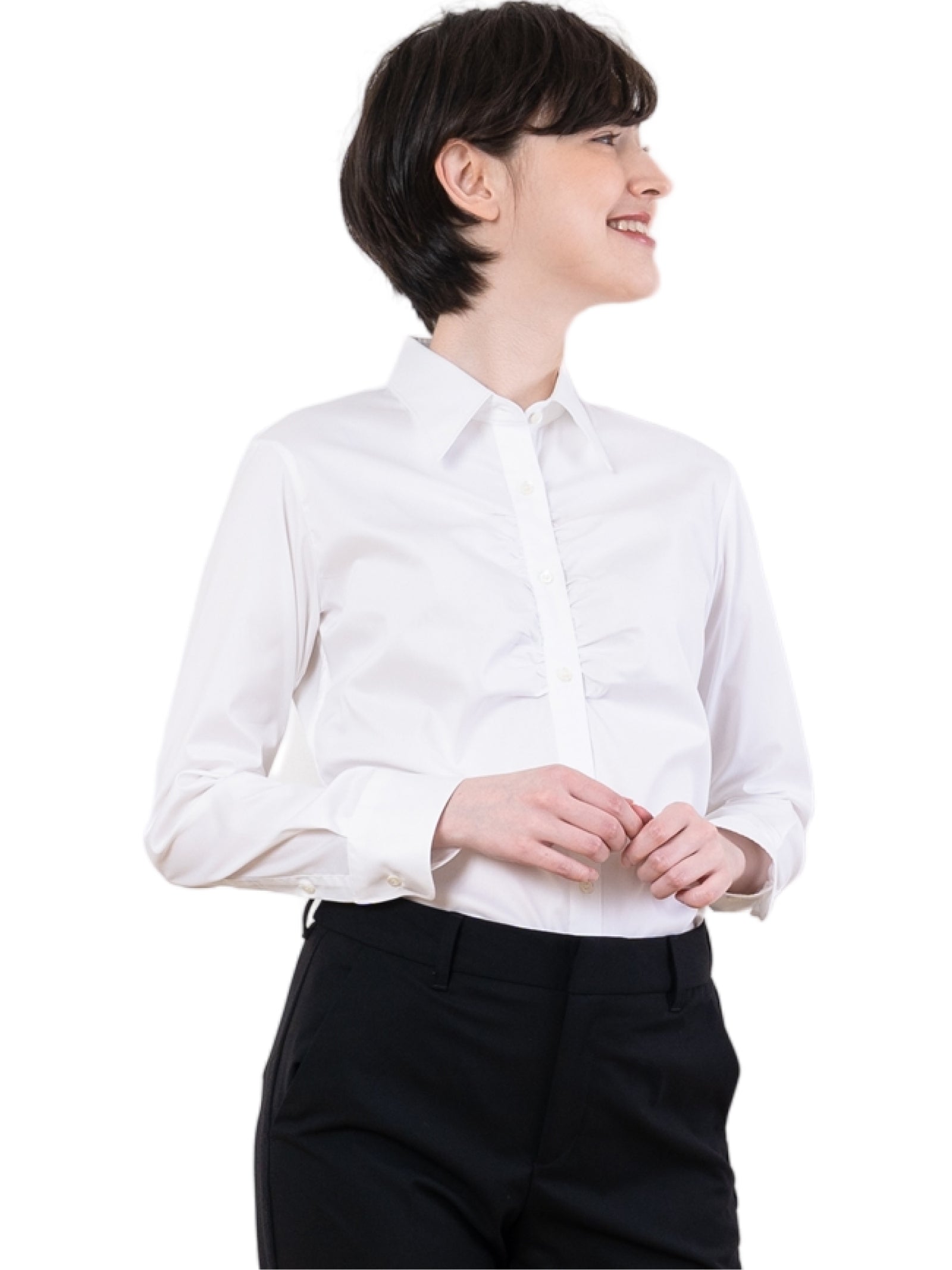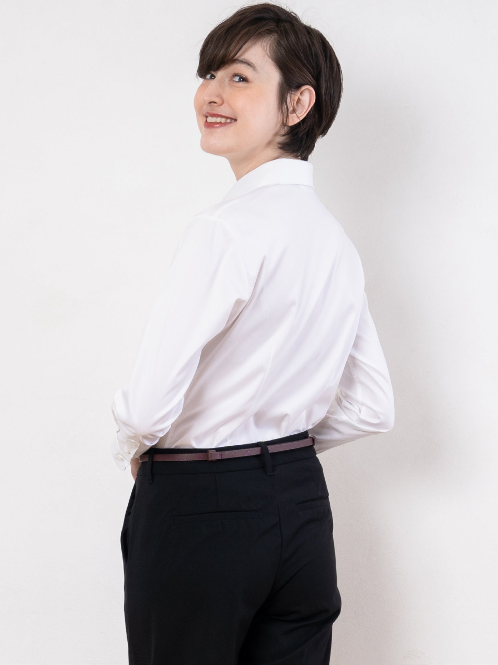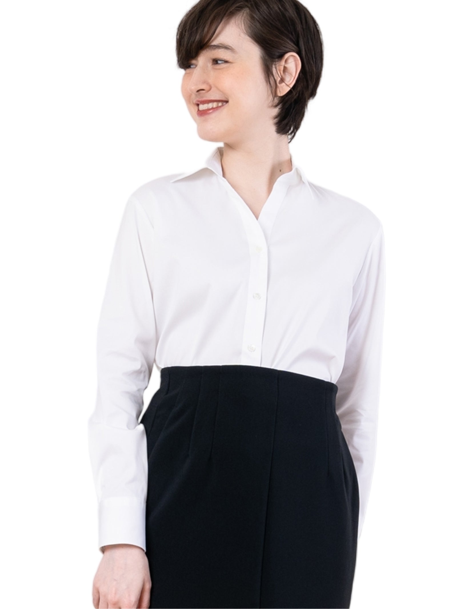 高彈力柔軟親膚 免燙 女性襯衫V領長袖白色