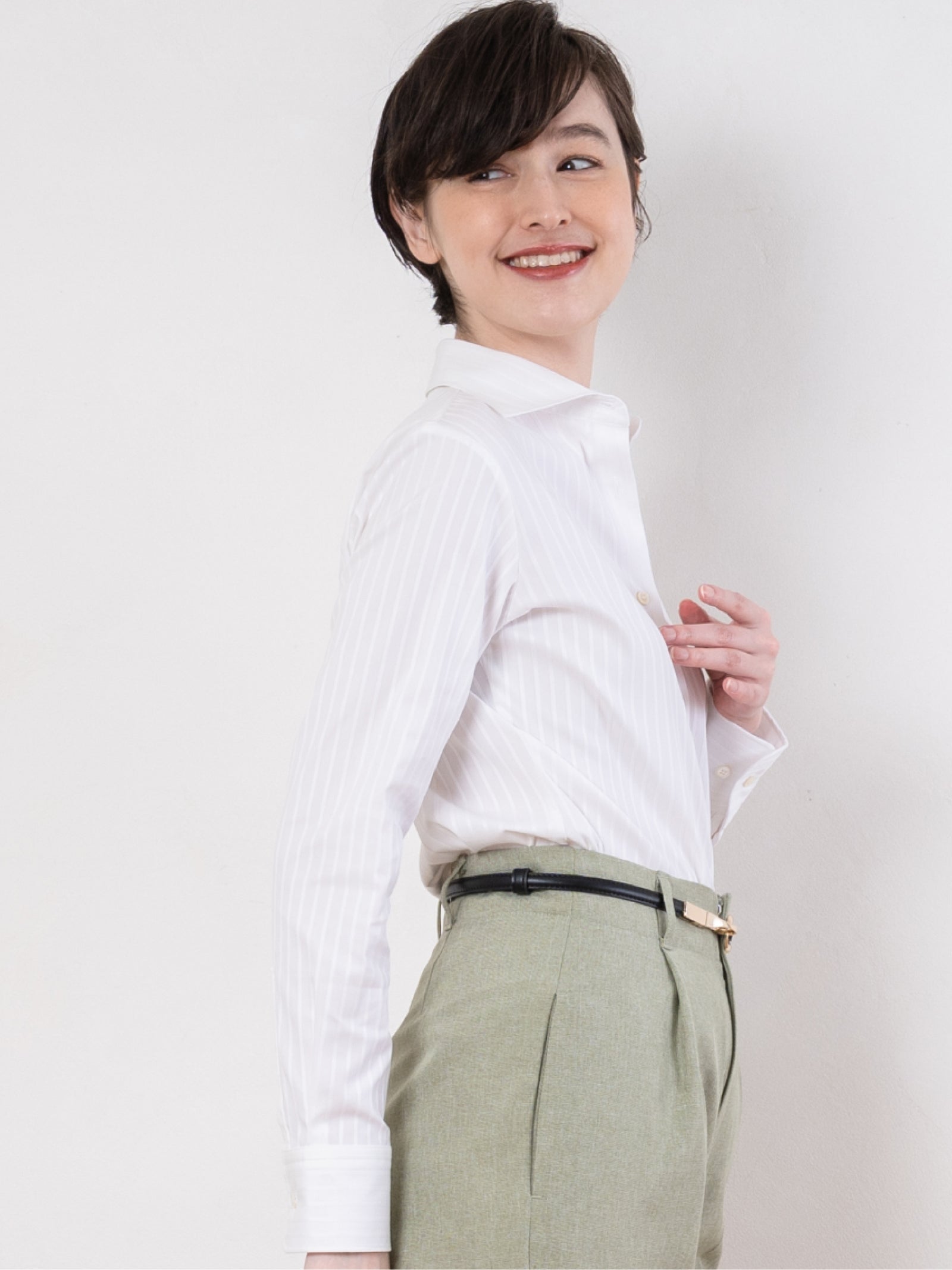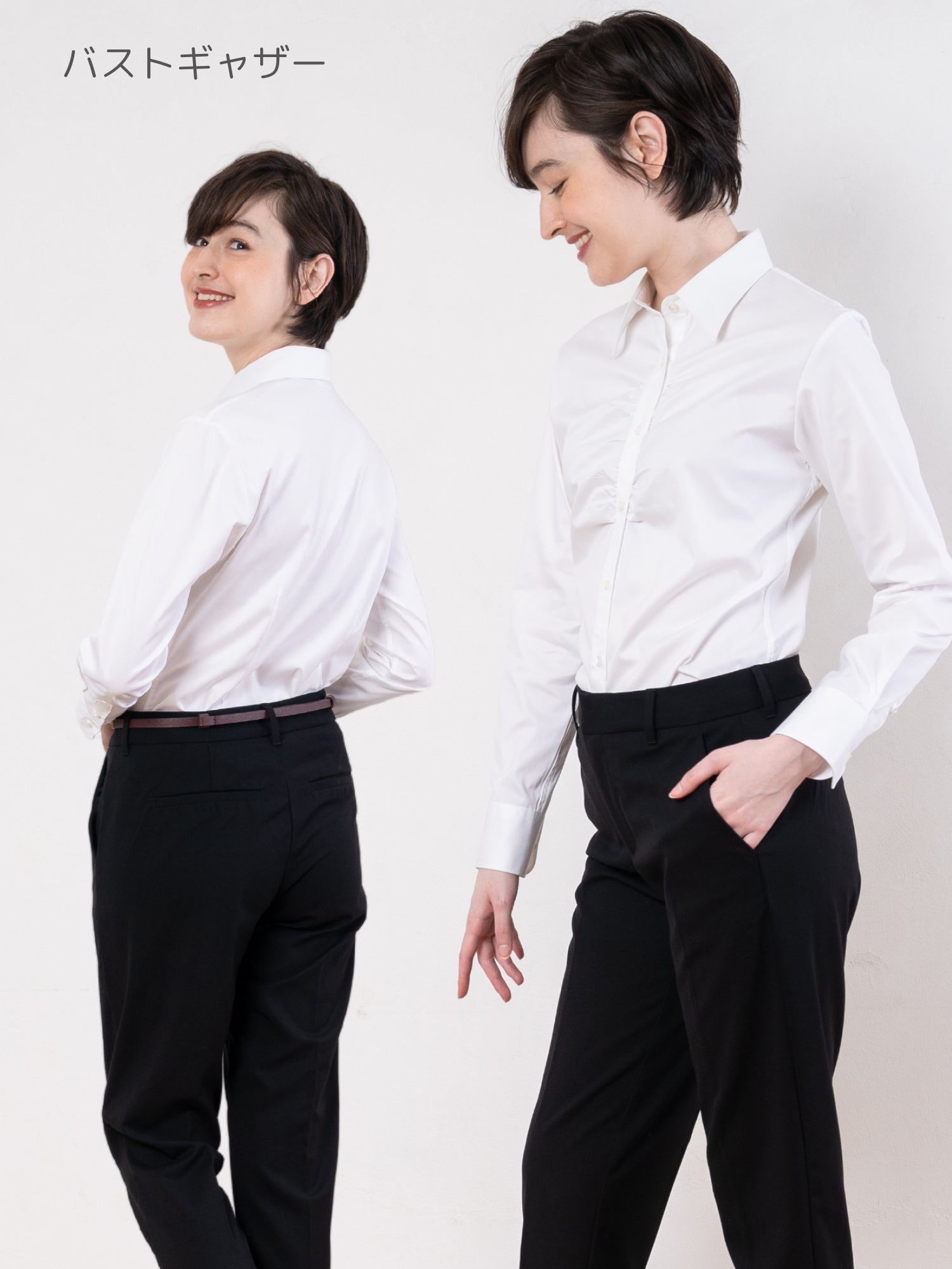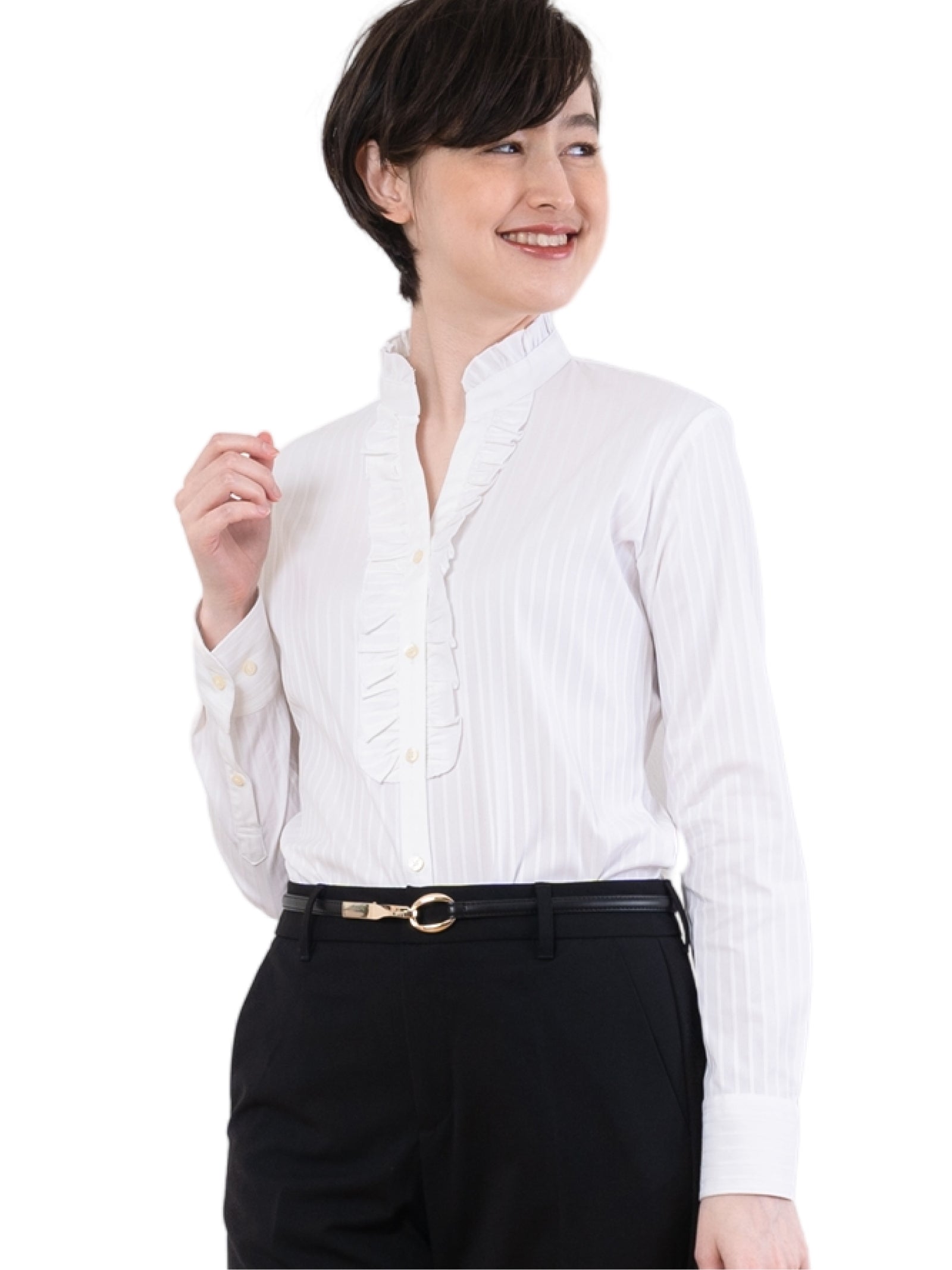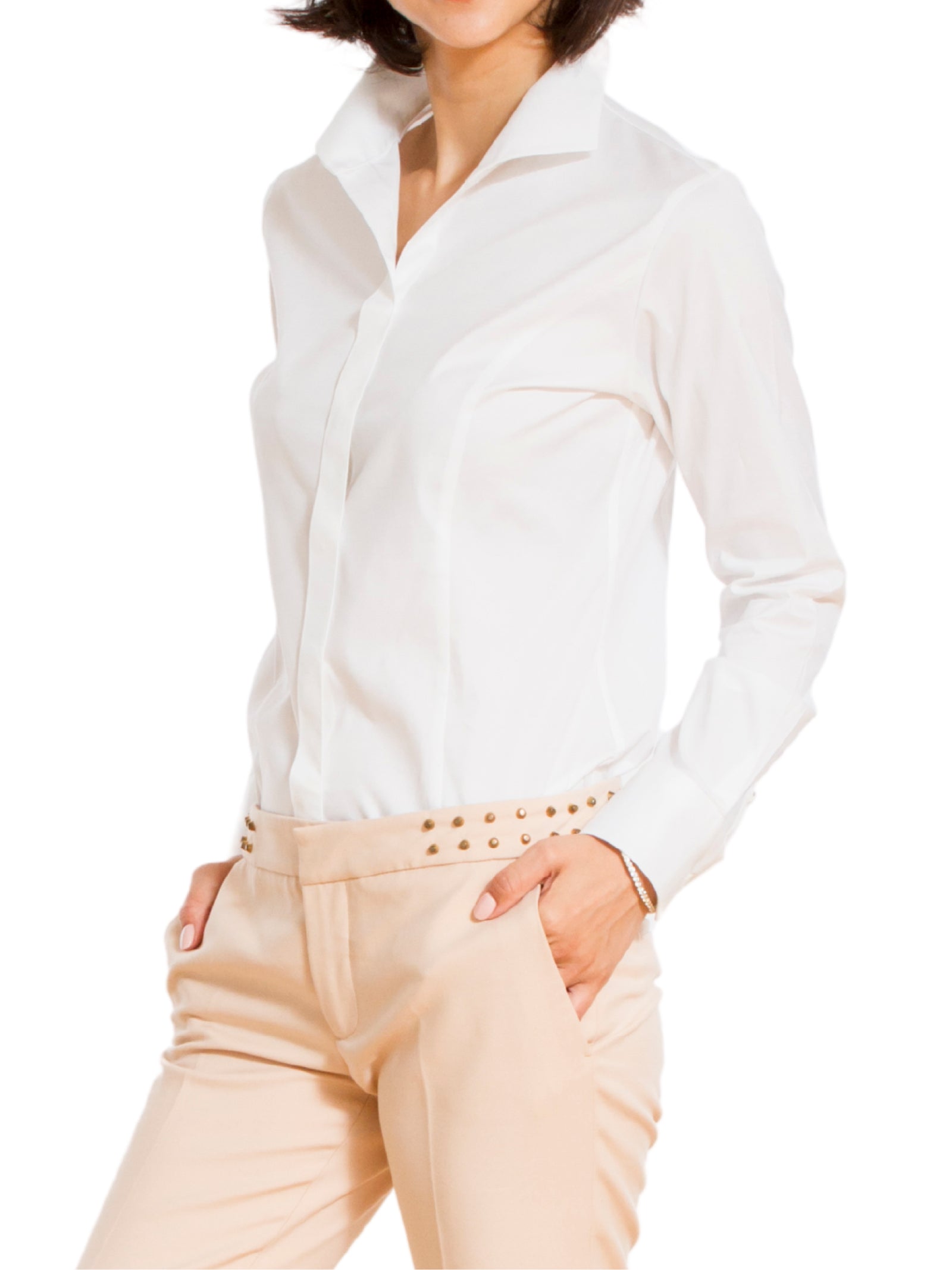 高彈力柔軟親膚 免燙 女性襯衫V領長袖白色