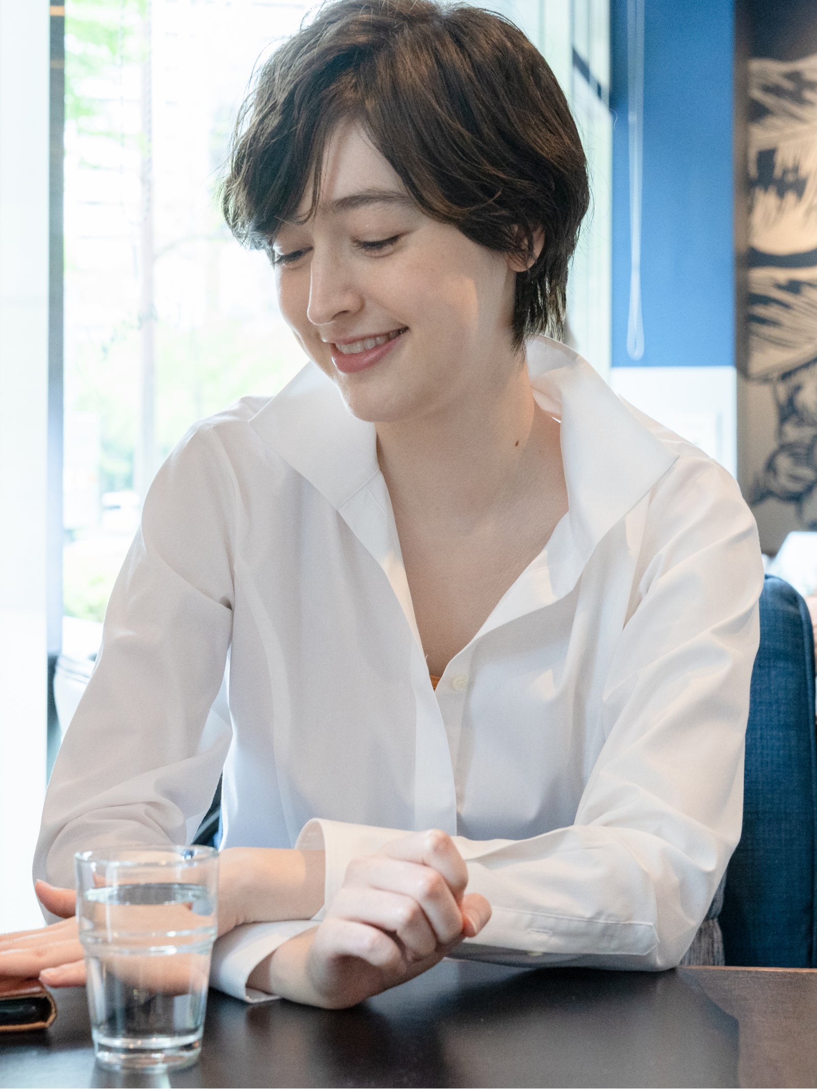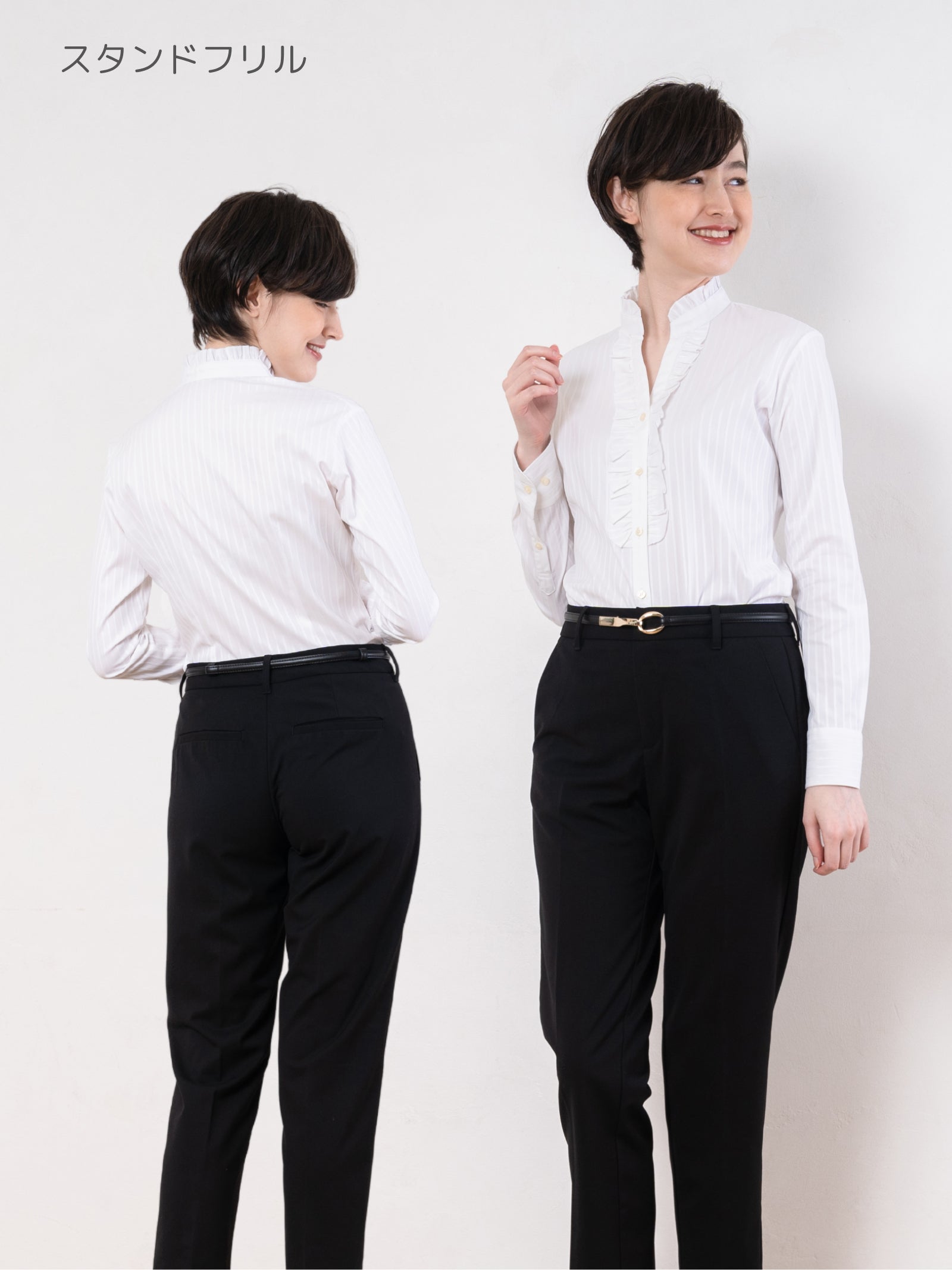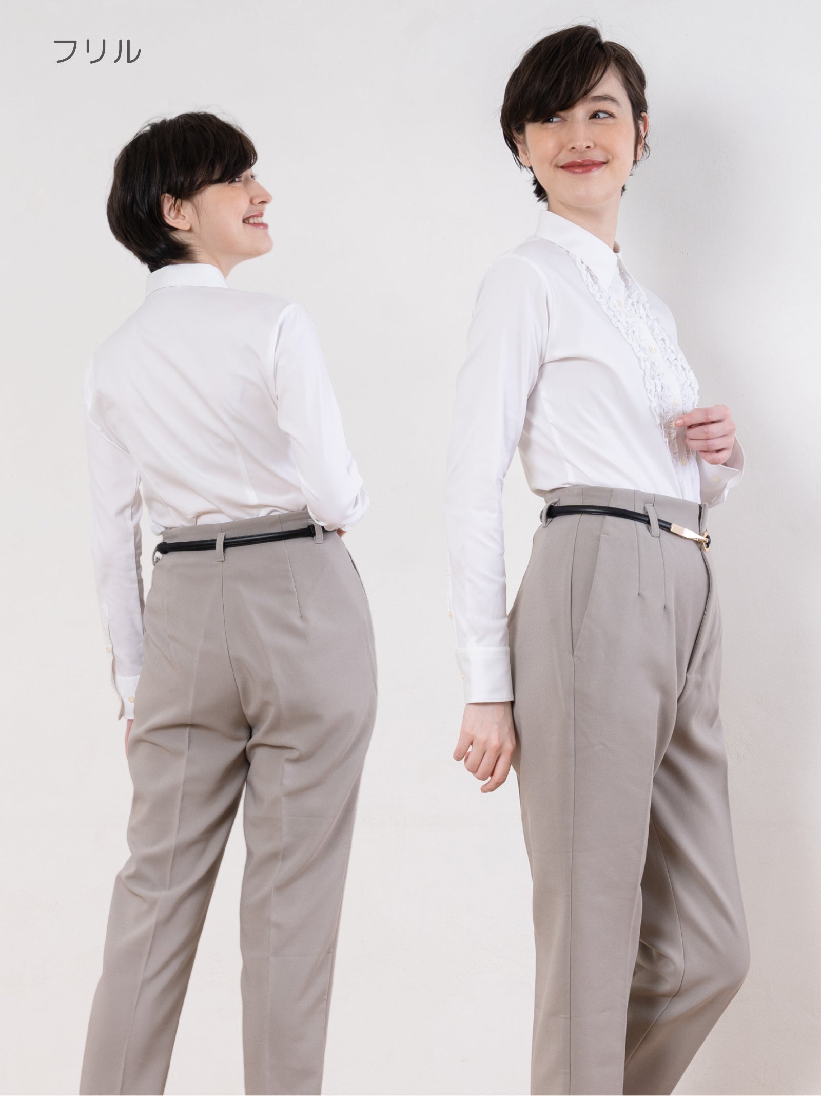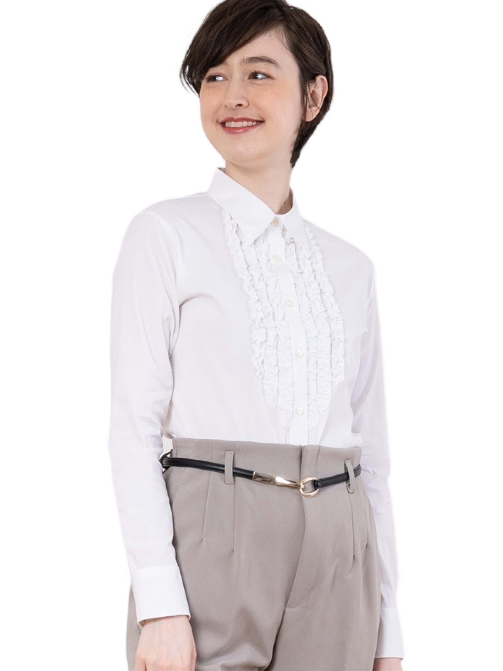高彈力柔軟親膚 免燙 女性襯衫V領長袖白色