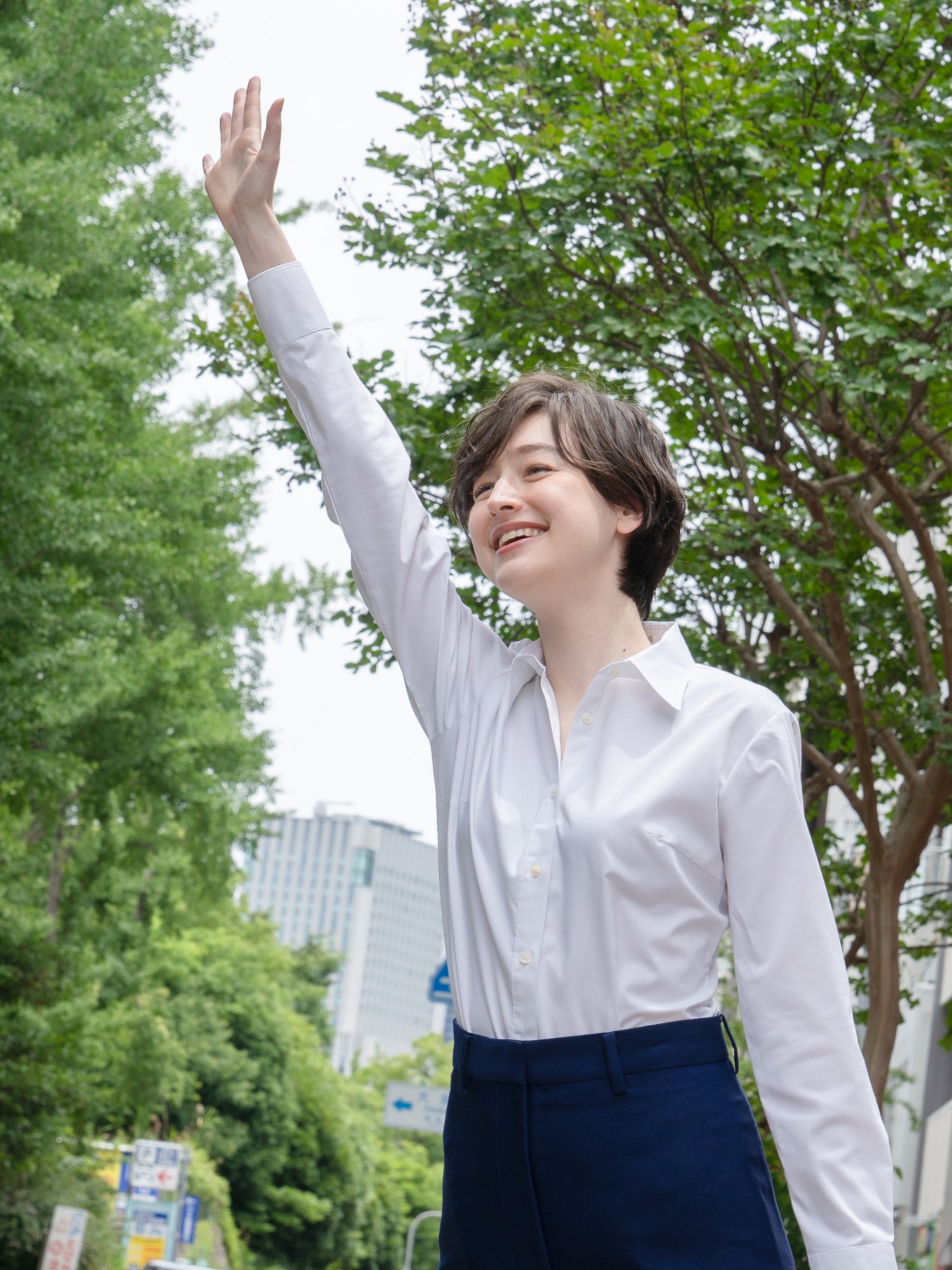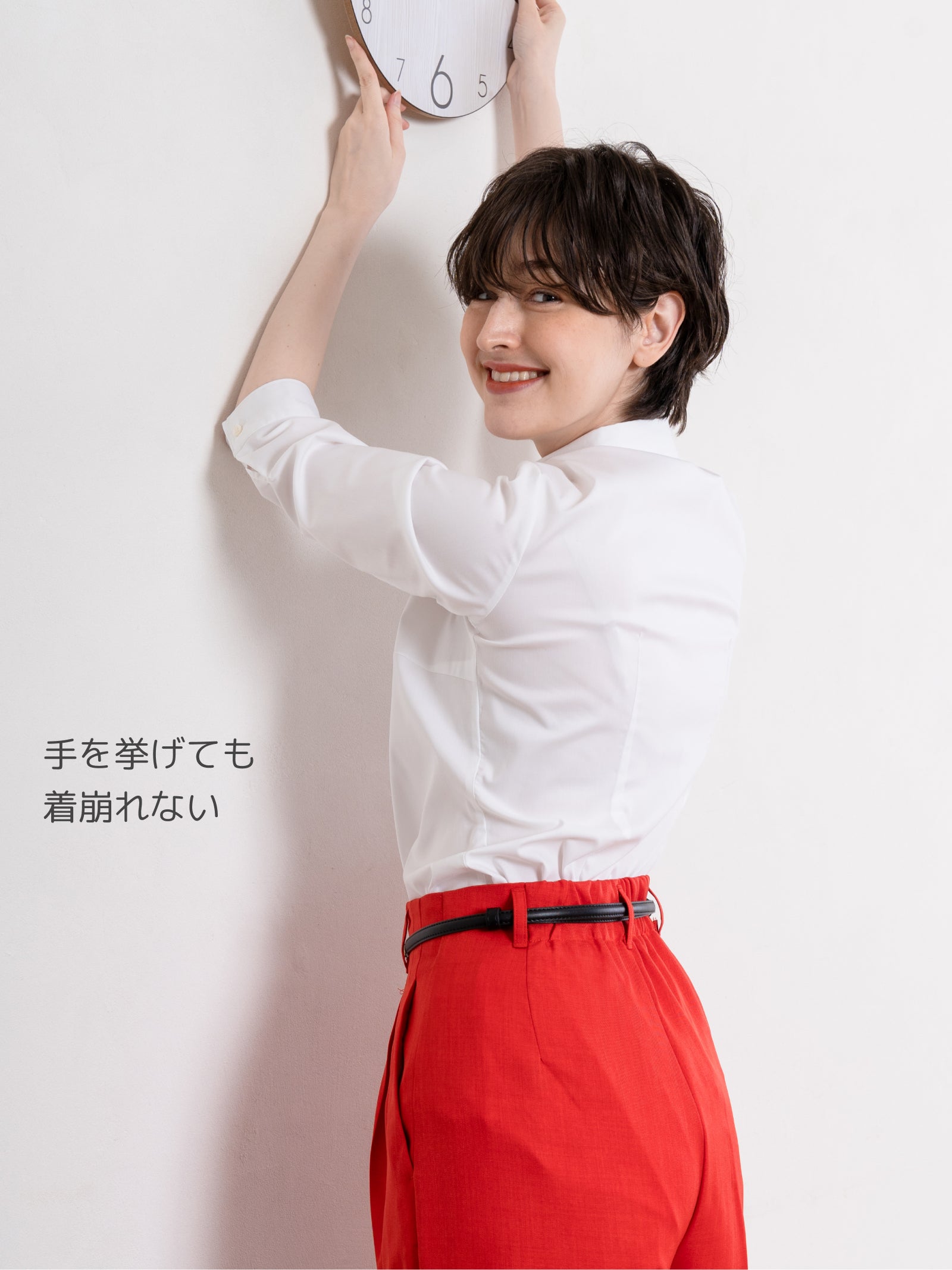 修身連體型 高彈力 免燙 女性襯衫 長袖 白色